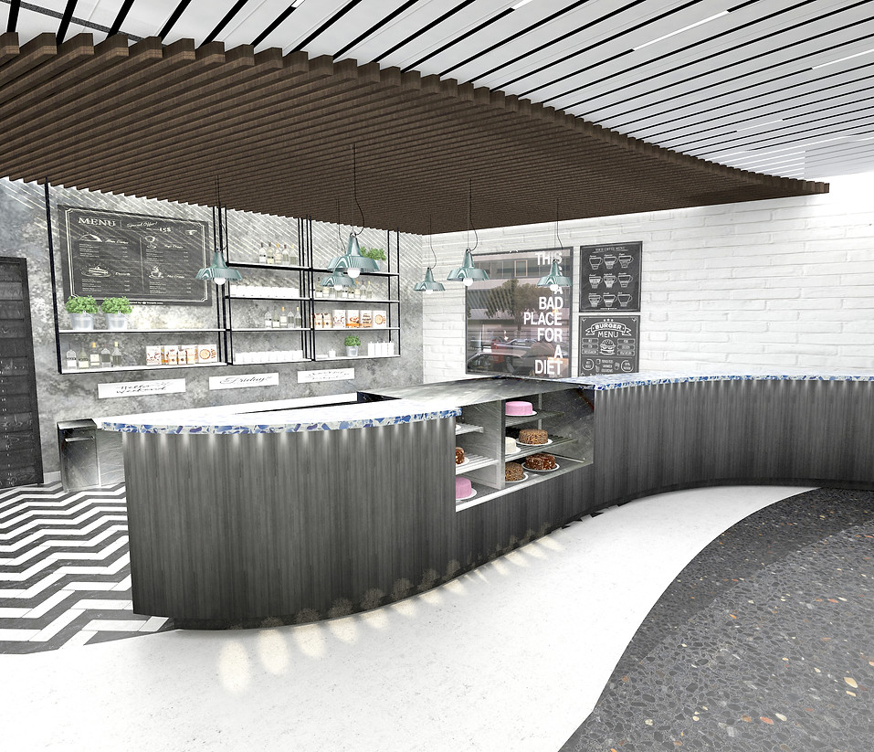 The Café Zone concept design is inspired by Air. Where s air is constantly in motion, even when you can't see it, the café area is constantly in motion as where people order, communicate and interact.